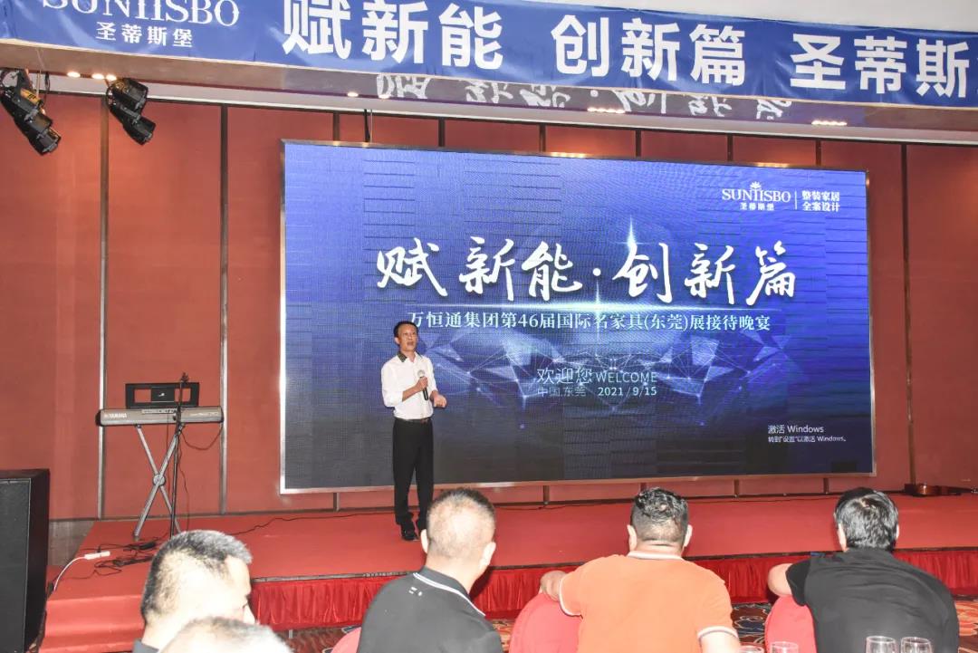 9月15日晚6时许,以“创新能,赋新篇”为主题的BB贝博艾弗森集团第46届国际家具展接待晚宴在虎门丰泰花园酒店举行。